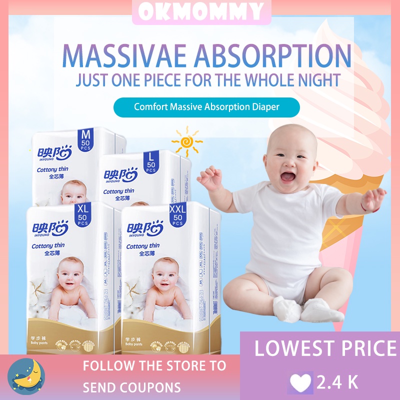 Okmommy Baby Disposable Diaper PANTS M/L/XL/XXL 50 Pcs Dry Diaper
